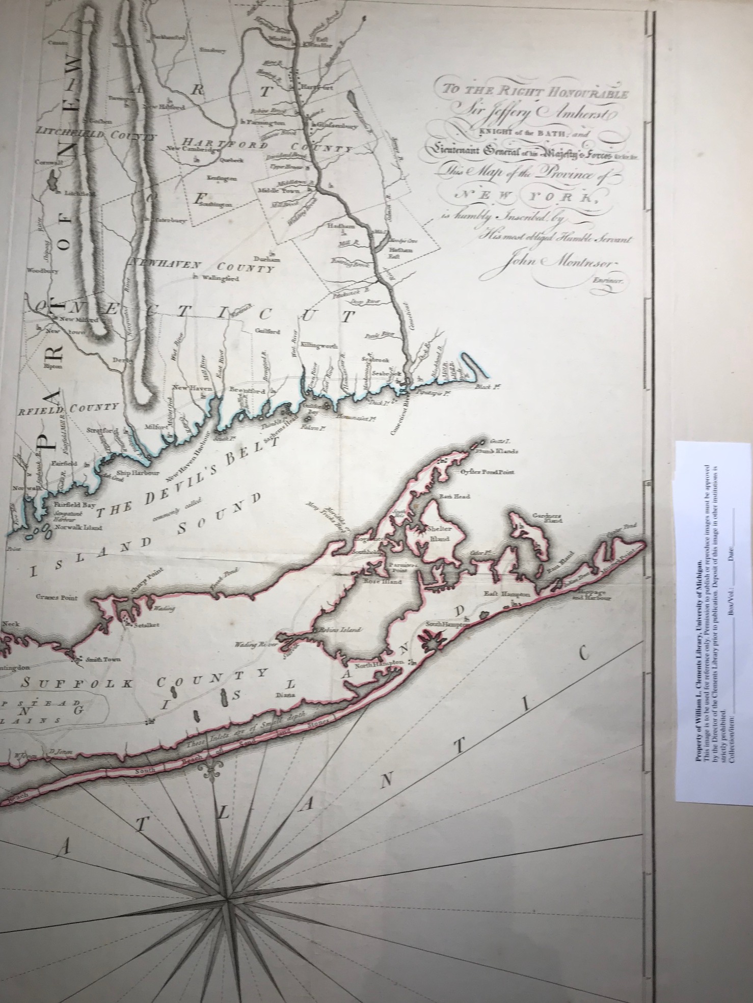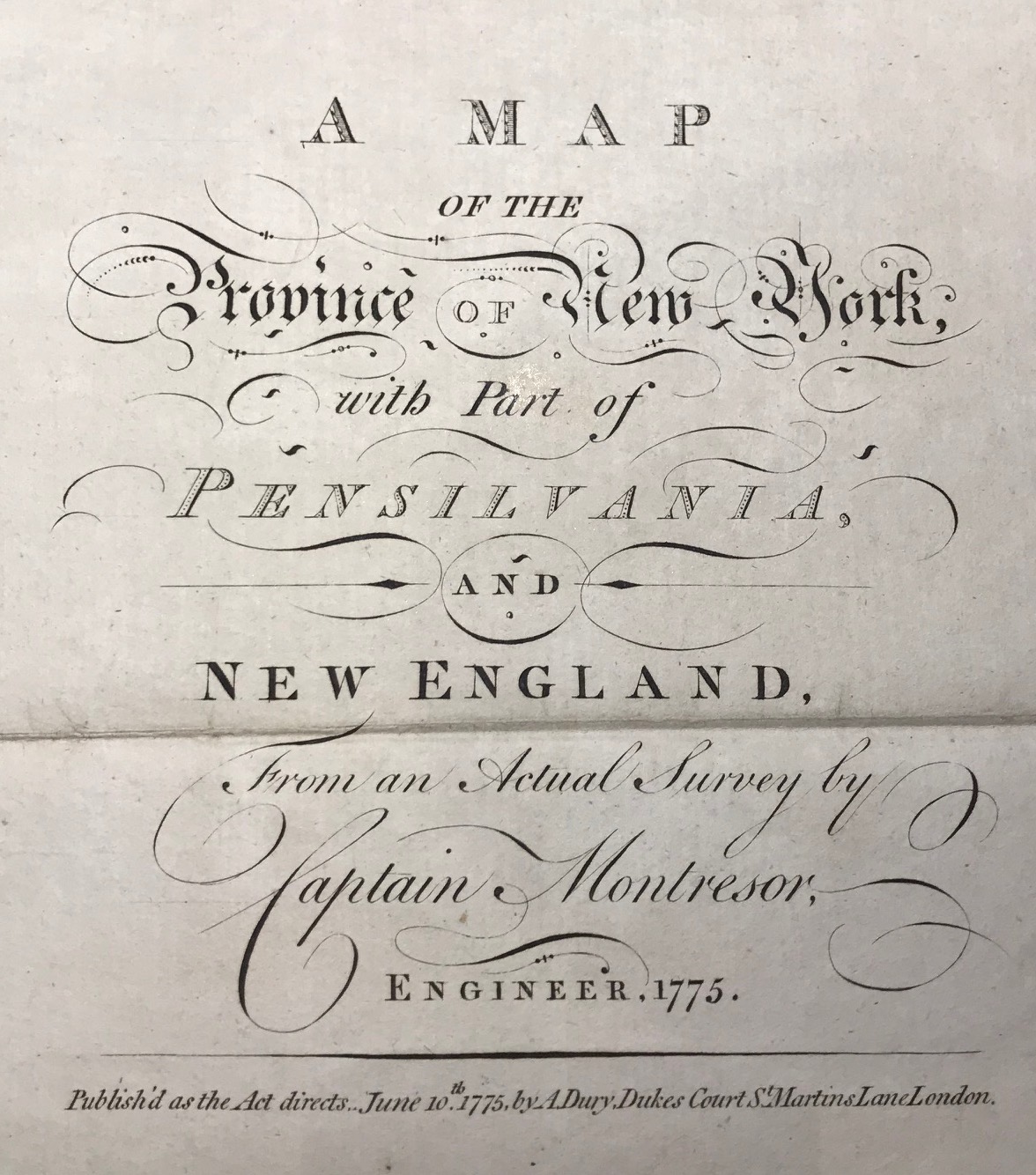 John Montresor was a British mapmaker, surveyor, and engineer, who published this map on June 10, 1775. He became the Chief Engineer of all British Army forces in North America, so I figured he knew his way around a map, and I was researching some action during the American Revolution that took place in upstate New York, so when I saw this map listed in the Clements Library database, I requested it (Maps 3-K-1775 Mo). I’ve talked about the Clements before, and will again; it’s full of amazing documents relating to American history, especially in the period of the Revolution, and is incredibly welcoming to visiting researchers. But their catalog gives no indication of the size of the thing.